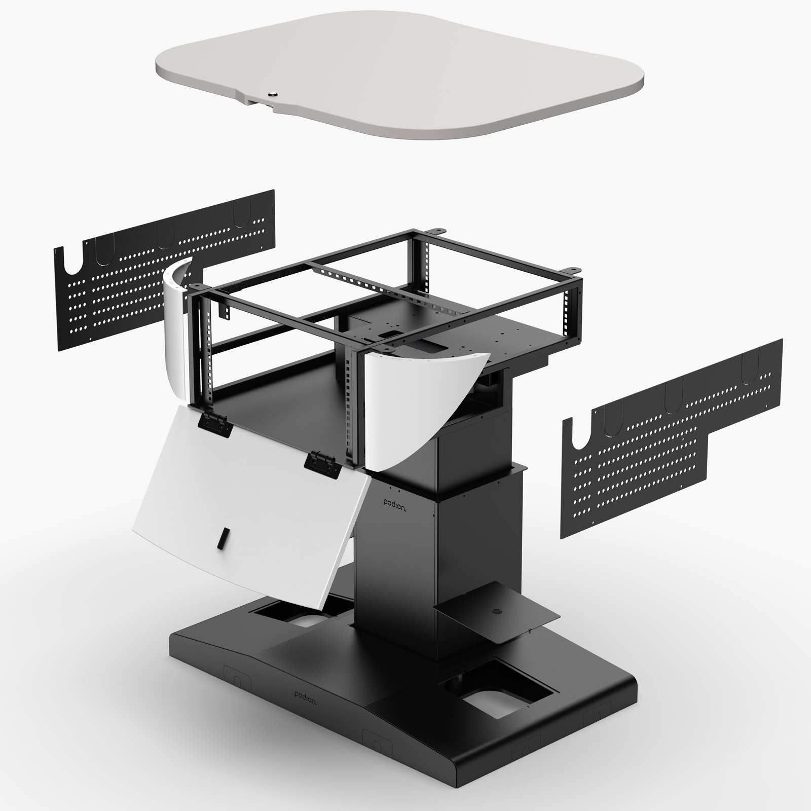 Electric height adjustable multimedia lectern moving from sit to stand height
