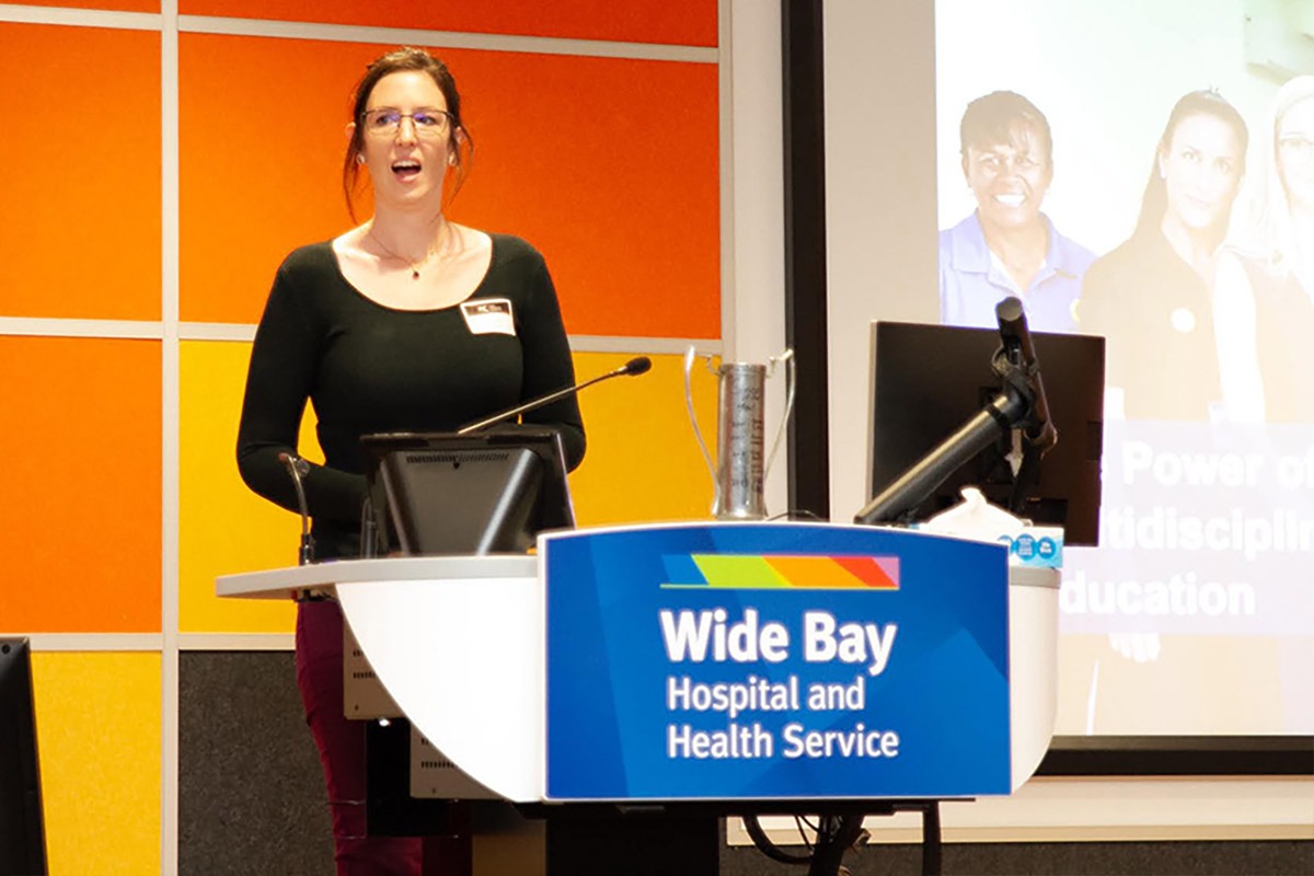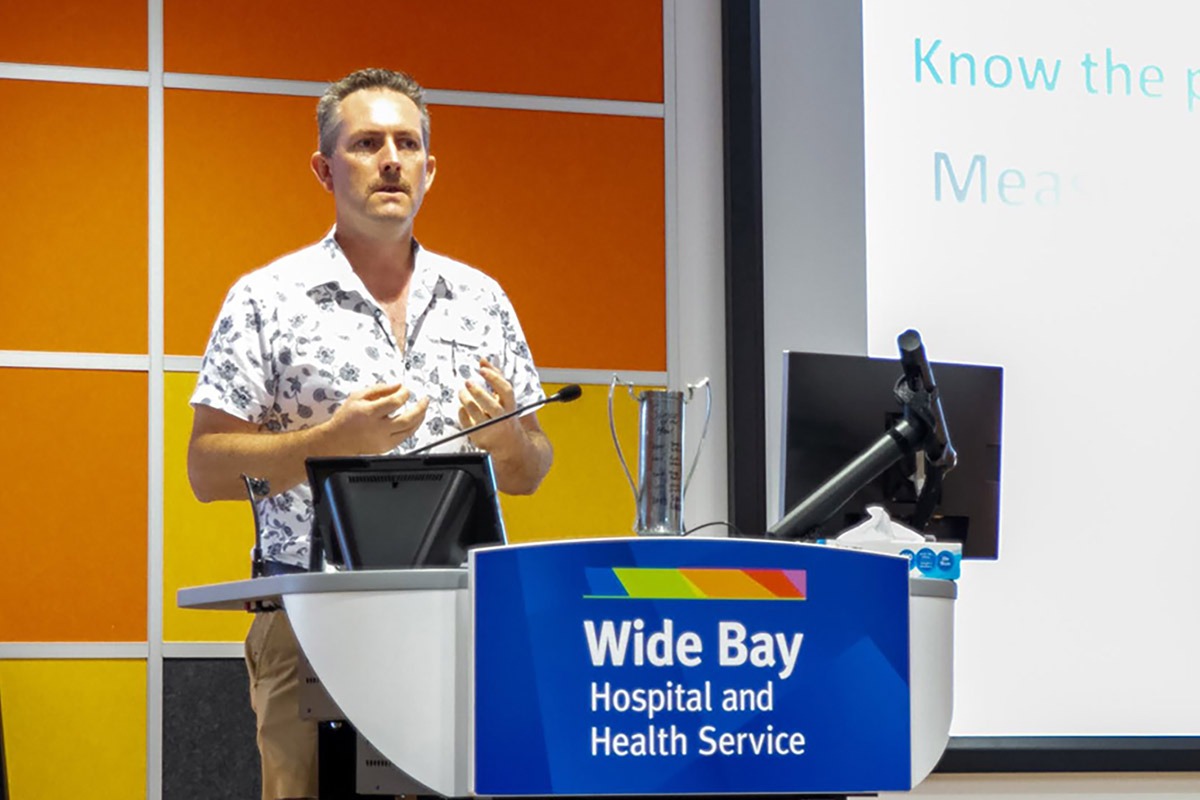 Custom timber wrap logo vinyl wrap on logo panel on multimedia lectern