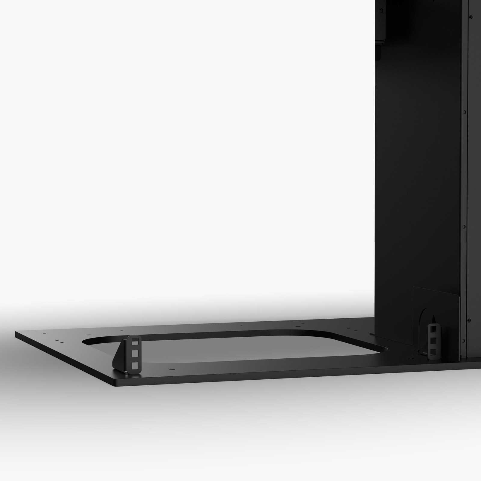 • Electric height adjustment raises and lowers the worktop and rack together for seated or standing use