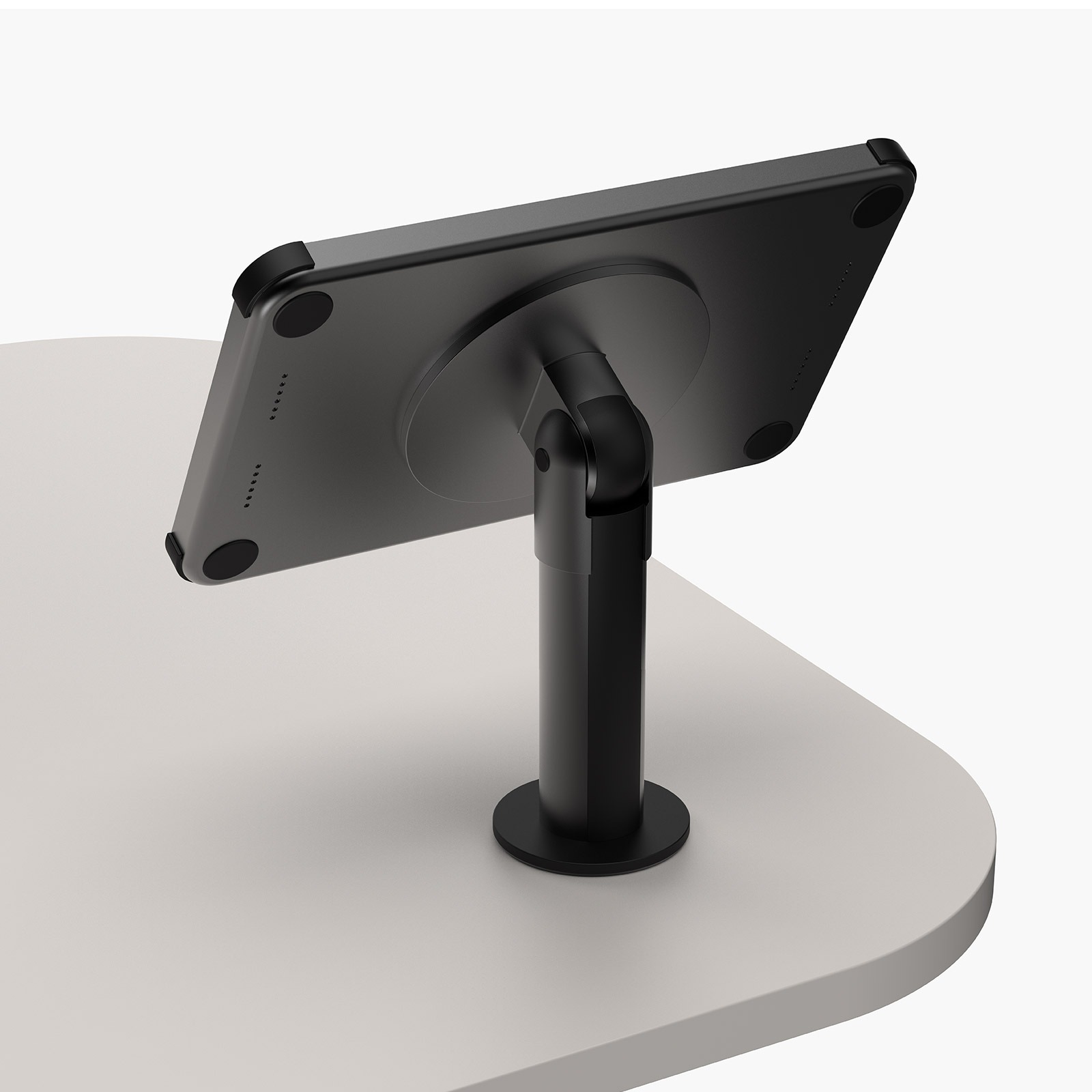 A secure enclosure for iPad and tablets that is mounted onto lectern worktops, desks and other flat surfaces.
