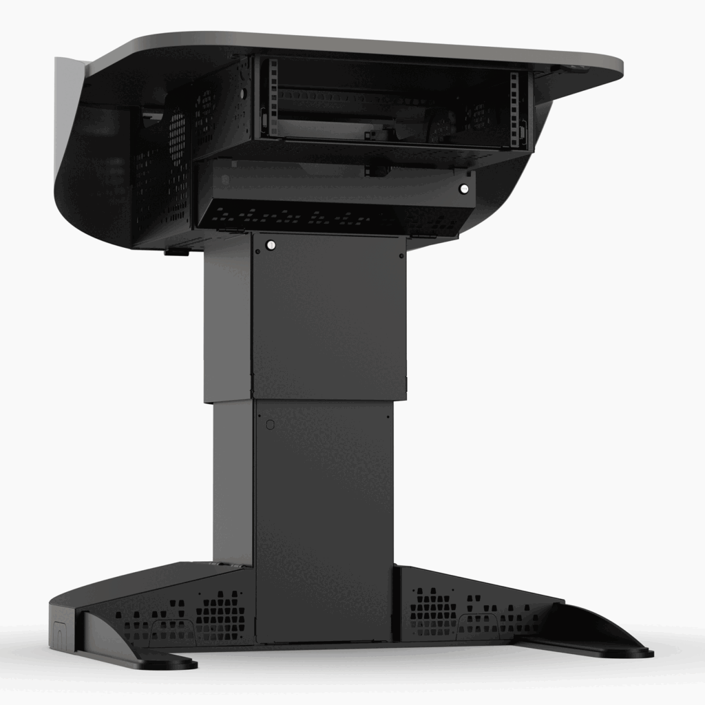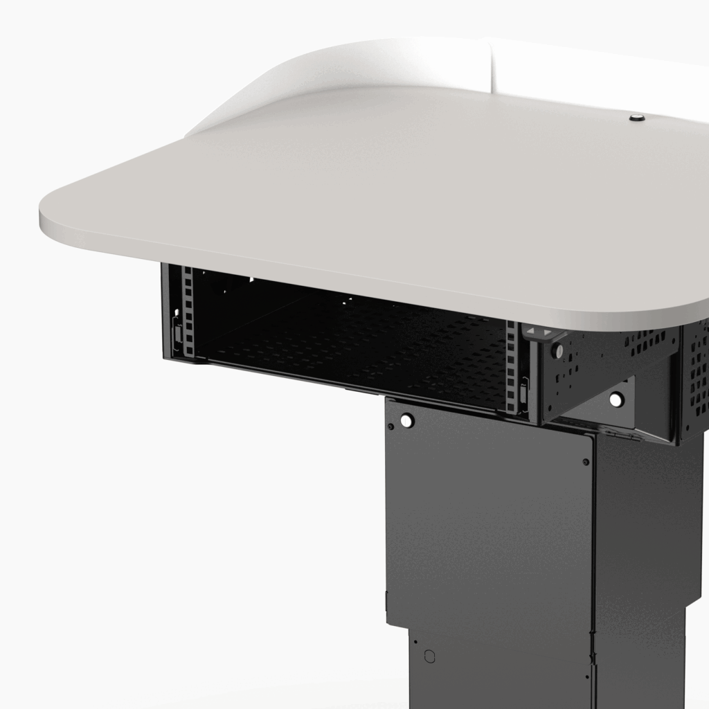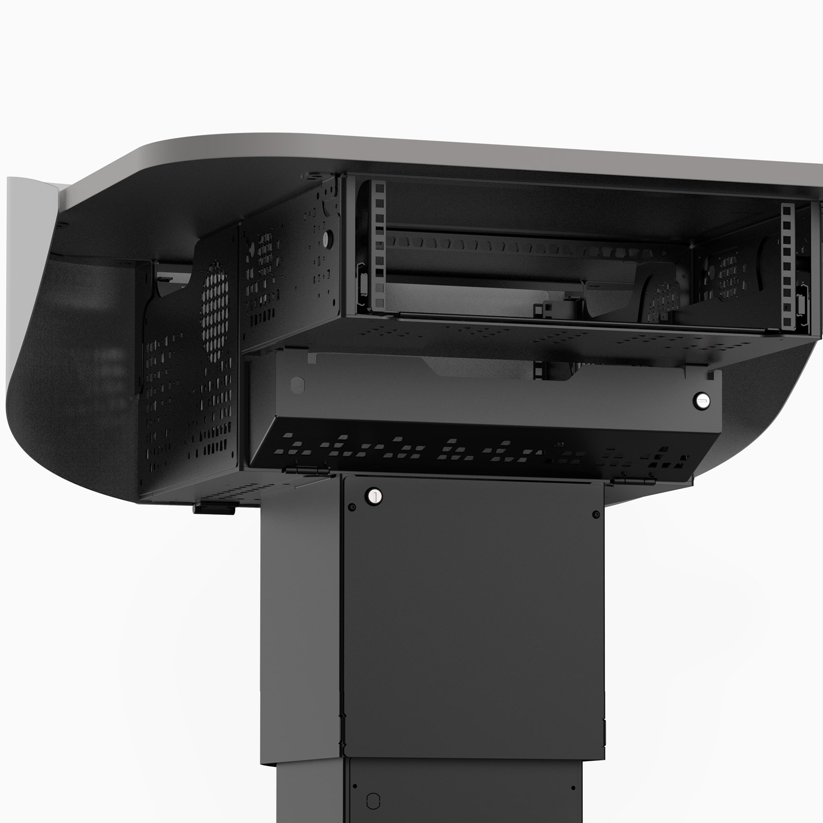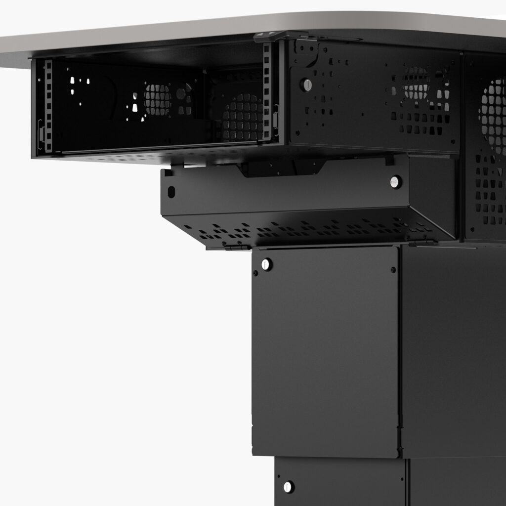 Perforated steel sections throughout the lectern support natural airflow, helping AV/IT equipment operate at stable temperatures.
