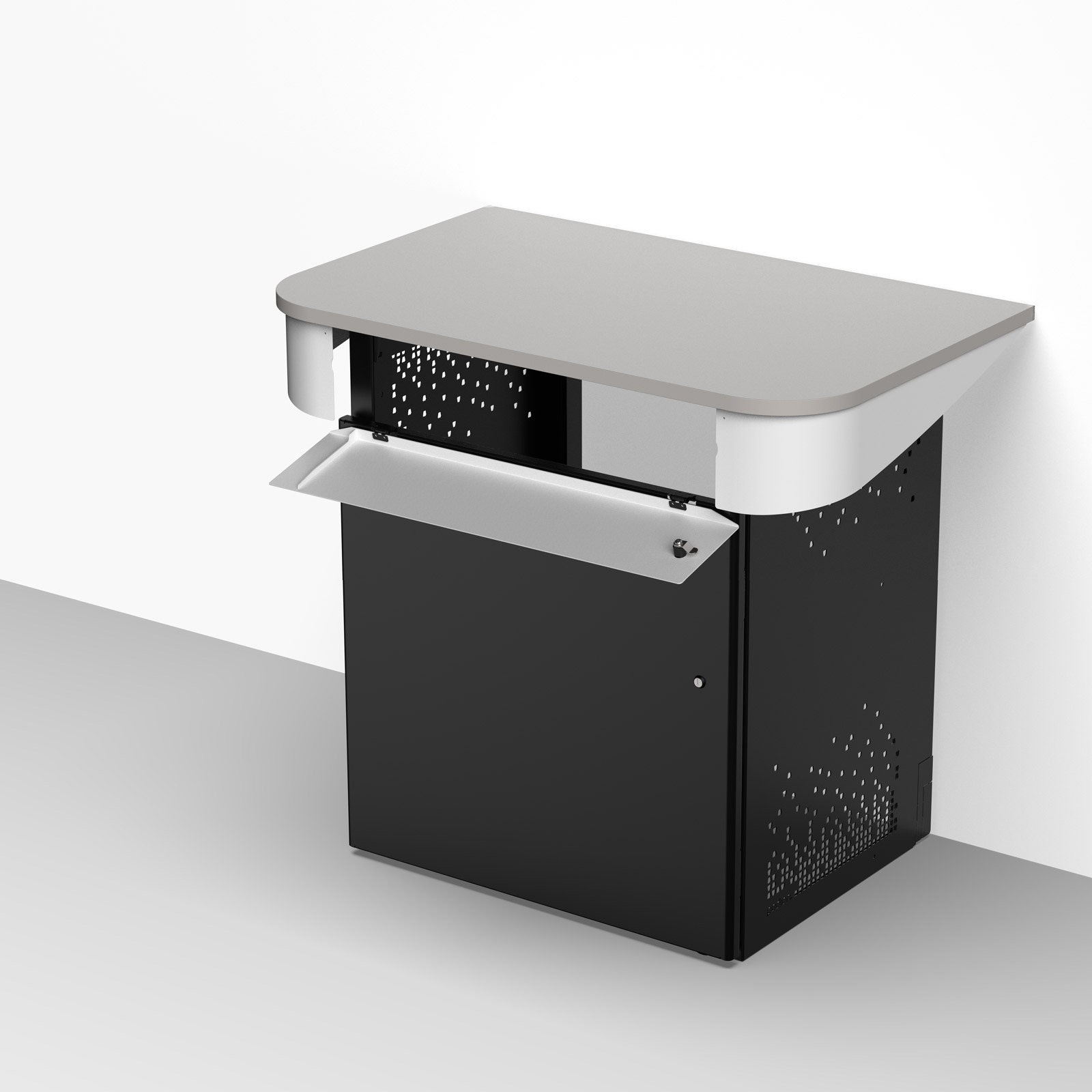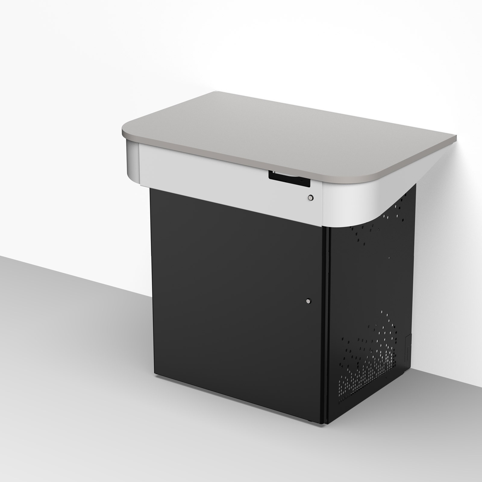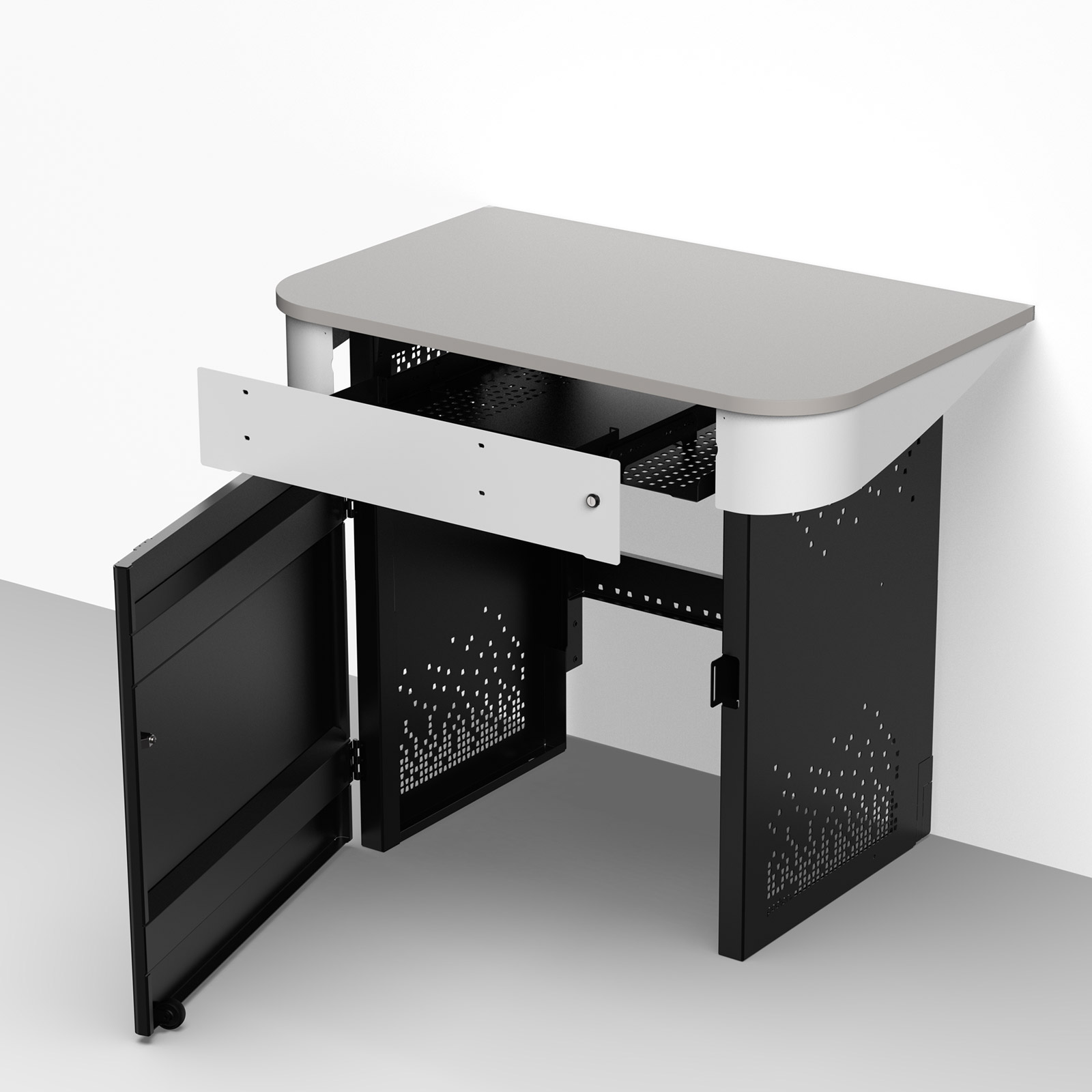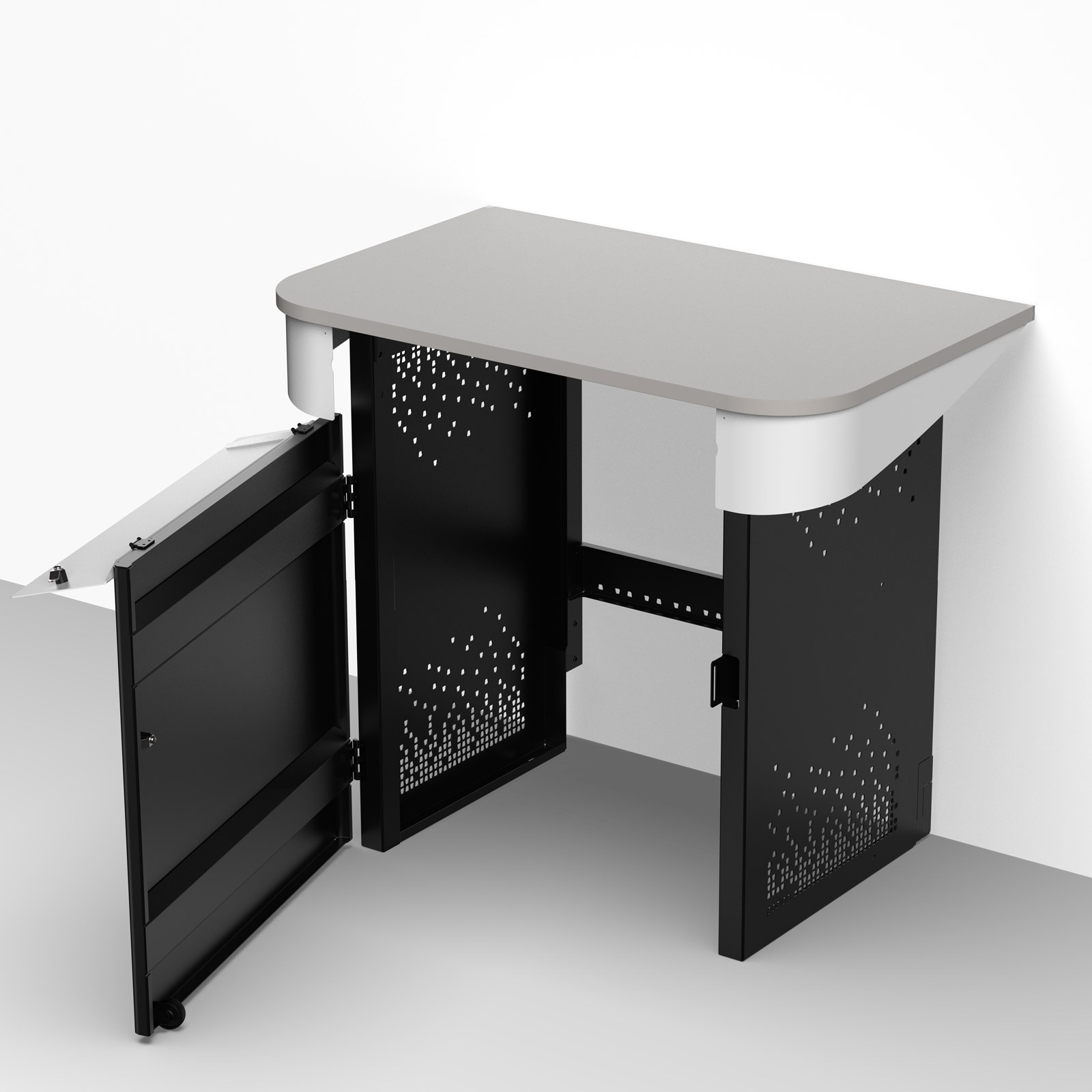 It is designed around the concept of a touchdown point — a defined workstation where educators briefly stop to connect devices, switch content or adjust room systems before stepping back into the learning space to engage with students.
