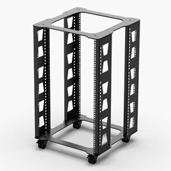 The top enclosure has provision for a 3RU slide-out rack tray, 1RU fixed rack strip and a micro PC, with or without cut-outs in the access panel. Internal AV storage is configurable with either a 12RU or 18RU roll-out AV rack frame.