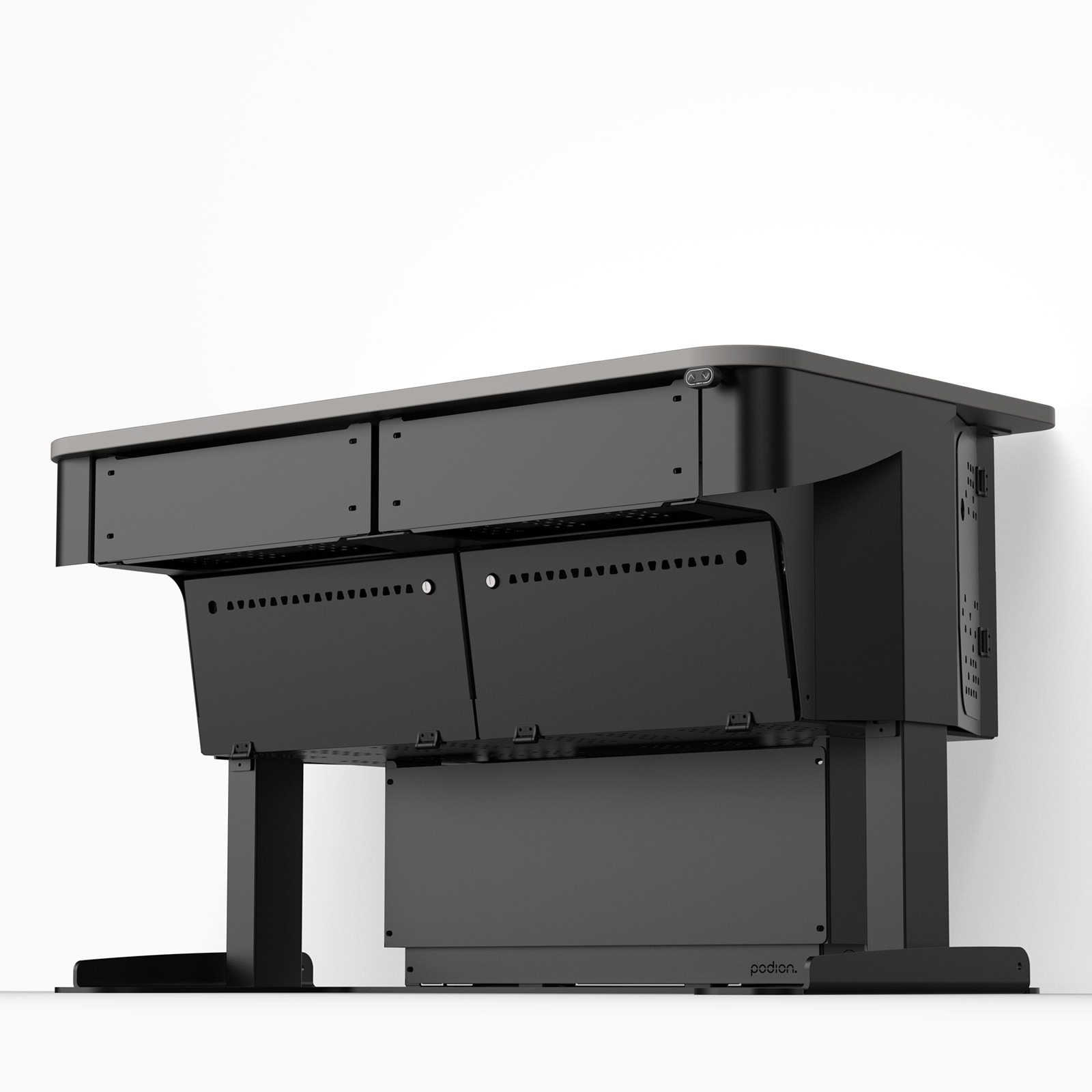 Unlike traditional lecterns, TDP-WA is freestanding but positioned against a wall, providing an accessible presenter base without placing a lectern in the middle of the space or disrupting room layouts.